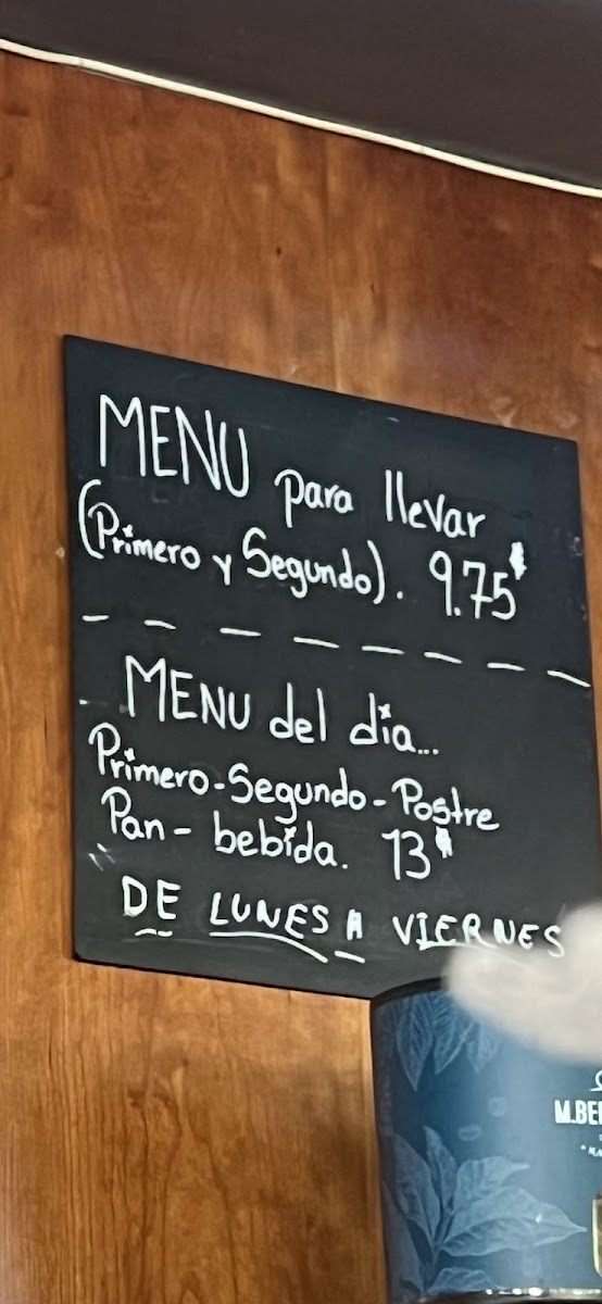 “ Menú del día a 13€ bien cocinado , está todo muy rico y abundante. Gente maja, aunque la música bachata, merengue y reageton es un poco cargante, sobre todo cuando a uno no le gusta y lo escucha todos los días que hemos estado comiendo. Es broma! Deberían de arreglar un poco más el mobiliario y limpiar los baños. ”